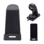 Streamline your charging needs with this Ultra 3-in-1 Power Station, an all-in-one power station, designed for smartphones, Apple Watches, and AirPods. A QR code is printed on each item and/or gift box providing access to the latest user manual. Features include a foldable 15W wireless charging phone stand, a 5W wireless charging base, and a 3W iWatch charger. LED indicator light on front of base. Includes a 39-inch USB-C to USB-C fast charging cable for effortless setup. Complies with FCC, Prop 65. 3″ L x 4.875″ W x 4.5″ H