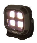 Output: up to 1400 lumens LED lights indicate battery level Cool/warm button switches between three color modes: warm, cool, both Red warning button powers the front bottom emergency red light (constant and flash modes) Power bank function: 2000 mAh Up to 3-6 hours of runtime Includes built-in rechargeable battery, USB-C charging cable and user manual Up to 8 hours of charge time Designed with a stand that pivots for multiple angles, built-in carabiner, tripod ready, and a powerful magnet Bulb. 1.75″ D x 4.25″ W x 4.25″ H