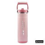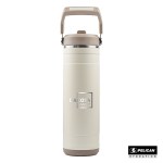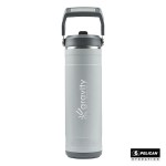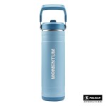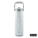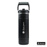 The 26 oz. Pelican Pacific Water Bottle is a stylish and practical way for those who want to stay hydrated throughout each days adventures whether at the park, the office, in the car or on the court. Built with sustainability in mind, the inner and outer vacuum sealed walls are made from 90% recycled 18/8 stainless steel and the vacuum insulation and copper lining will help keep your iced drinks cold for 24 hours. The Pelican Pacific features a leak-resistant screw-top lid with straw spout so its easy to sip your beverage without unscrewing the lid or worry about spills, and the ergonomic swing handle makes it easy to carry with you. It also has a removable silicone base that provides extra stability and protection from bumps and scrapes, a durable and protective powder-coat finish and will fit most car cup holders. FDA compliant and BPA Free. Complies with Prop 65. 3 1/4″ W x 10 1/2″ H x 3 1/2″ D