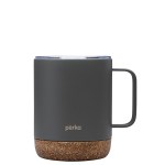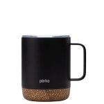 The Perka 12 oz. Wyatt Mug is great for morning coffee whether in the backyard or camping. Its double wall 18/8 stainless steel vacuum-sealed construction and copper lining keep your favorite drink hot for 10 hours and cold for 18 hours. It has a molded cork base that protect desktops from scratches and provides an earthy look. The Wyatts clear push-in lid with sliding closure is easy to sip from and its handle is comfortable to hold. The powder coated finish is durable and sweat proof and the mug is FDA compliant and BPA Free. A portion of all proceeds is donated to Shelter to Soldier, a non-profit organization that rescues dogs to train as service animals for veterans in need. Complies with Prop 65. 4 3/4″ W x 4 5/8″ H x 3 1/2″ D
