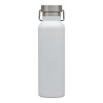The Splendid 22 oz. double wall stainless steel water bottle has a modern design that is fit for the outdoors and the office. Its easy to carry with its hinged stainless steel handle attached to the screw-top lid and will keep your cold water cold for 24 hours and your hot tea hot for 12 hours as it is vacuum sealed, has copper lining and an inner wall made of 304 stainless steel. The Splendid bottle has a beautiful powder-coated finish that prevents sweating and is a perfect employee appreciation gift. It fits in most car cup holders and is FDA compliant and BPA free. Complies with Prop 65. 2 13/16″ W x 9 3/4″ H x 2 13/16″ D