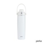 Stay hydrated sustainably with the Perka Lenker 20 oz. Water Bottle, crafted for durability and high performance. Made with both an inner and outer wall of recycled 18/8 stainless steel, this bottle is an eco-friendly choice without sacrificing quality. Its recycled PP chug lid features a secure push-lock mechanism for effortless sipping and leak prevention. The hinged TPR soft-touch carry handle provides a comfortable, ergonomic grip for easy transport, whether you’re commuting, working out, or adventuring outdoors. A sweatproof powder coat finish enhances grip and adds a sleek, modern touch. Designed to keep beverages hot for up to 12 hours and cold for an impressive 24 hours, its the ideal hydration companion for any lifestyle. BPA-free and FDA-compliant. A portion of all proceeds is donated to Shelter to Soldier, a non-profit organization that rescues dogs to train as service animals for veterans in need. Complies with Prop 65. 3 1/4″ W x 10″ H x 3 3/4″ D