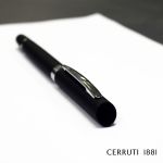 The Cerruti 1881® Soft Pen features a modern look. The pen is light and very well balanced. The top and barrel of the pen are finished with a black rubber coating. The details and clip are in chrome finishes. The brand is engraved on the central ring. The pen comes in a beautiful presentation box. 5.5″ W x 0.47″ H