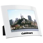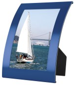4″ x 6″ bold color metal picture frame with curved design and matte finish. Black plastic easel back, clear plastic window insert. Note: standard imprint location is horizontal, portrait imprint location available on request. 5″ H x 7″ W