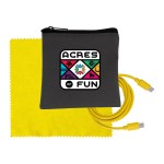 Introducing the sleek Gray Executive Tech Pouch, crafted from recycled PET material for a sustainable and stylish look. Stay connected with our vibrant 4-foot Type C to Type C charging cable, perfect for fast and efficient charging. Keep your devices looking spotless with our colorful 5 x 5 RPET Cleaning Cloth, made from recycled materials for an eco-friendly cleaning solution. Elevate your tech accessories with these high-quality and environmentally conscious products. Complies with CE, Prop 65. 4″ L x 4″ H