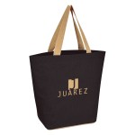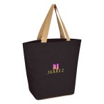 Made Of 100% Pure Natural Jute, A Natural Vegetable Fiber 100% Biodegradable Colors Created With Azo-Free Dye 18″ Cotton Webbing Handles Spot Clean/Air Dry. Complies with Prop 65. 16.25″ W x 14.25″ H