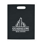 Made Of 80 Gram Non-Woven, Coated Water-Resistant Polypropylene. Great For Literature Packets, Handouts, Grab Bags And Much More. 2 ½” Bottom Gusset. Die Cut Handles. Spot Clean/Air Dry. Complies with Prop 65. 11″ W x 14″ H