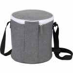 The Round RPET 9 Can Cooler Bag? is a fun take on a cooler! This foil lined cooler easily fits 9 cans and can be carried over your shoulder for any on the go trip. Made with recycled materials this cooler contributes 1% to the Planet! 8.00″ D x 8.00″ W x 8.25″ H