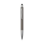The Top Notch Metallic, a sleek and sustainable push-action ballpoint pen, catches the eye with its shiny metallic barrel but also makes a bold statement in eco-conscious style by being crafted with post-consumer recycled aluminum. The elegant design extends to the metal clip, matching shiny chrome plunger, clip, tip, and trims black undercoating on white. The Top Notch Metallic doesn’t just stop at aesthetics; it seamlessly integrates modern functionality with a black rubber stylus on the plunger. Accompanied by a black ink standard low lead refill, this pen is not just a writing tool; it’s a sustainable and stylish companion for those who appreciate quality with a conscience. 5.5″ L