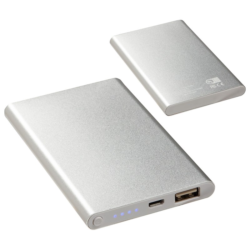 4000mAh capacity power bank in a slim aluminum exterior, 4 LED power indicatory lights, micro to regular USB cord included, UL certified Li-Polymer battery. Complies with Prop 65, UL, UN38.3. 4.25″ L x 0.375″ W x 2.625″ H