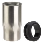The Vortex 4-in-1 Stainless Steel Can Cooler features double-wall vacuum insulation with its stainless steel construction and serves 4 functions including insulated tumbler, 12 ounce can cooler, slim can cooler, and bottle cooler. Use the insulator ring for cans and bottles to keep them cold for up to 4 hours. When used as a tumbler it keeps drinks hot for 3 hours or cold for up to 9 hours. Hand wash only. BPA-free and FDA-certified. Complies with FDA, Prop 65. 6.25″ H x 3.125″ Diameter