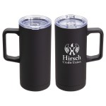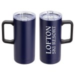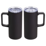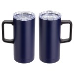 Mirage 17 oz Vacuum Insulated Stainless Steel Mug features double-wall insulated stainless steel construction that keeps beverage hot or cold for up to 6 hours and clear plastic push-on lid with sliding drink opening. Hand wash only. BPA Free and FDA certified. Complies with FDA, Prop 65. 7″ H x 3.125″ Diameter