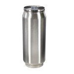 Keep drinks hot or cold for hours with this vacuum insulated, double wall, stainless steel beverage holder in the shape of a pop-top can. The top pops up with a built-in straw. Wide mouth makes it easy to clean and easy to add ice. 2.75″ W x 7.5″ H x 2.75″ D