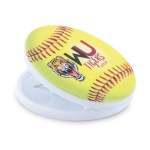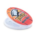 A strong magnetic clip with a large round imprint area. Now available with optional sports related graphics on the white item. 2.375″ W x 2.375″ H x 1.25″ D