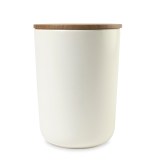 Ready to meet your culinary storage needs, this striking, but simple ceramic container is designed to store your kitchen staples in style. We love using them for everything from coffee to sugar, making it our go-to for any other cooking or baking goods. Accented by the rich warm grain of the sustainably-sourced acacia wood lid, they have a silicone ring to retain the freshness of whatever you choose to store inside. These containers are also great for organizing desktop and home essentials. Complies with CPSIA, Prop 65. 7.75″ H x 5.25″ L