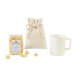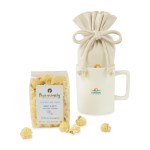 The Poppinsanity Artisanal Popcorn Mug Stuffer pairs a classic ceramic mug with gourmet popcorn, making it a thoughtful gift for employees, new hires, or event attendees. Packaged in a canvas drawstring bag, it’s a simple yet memorable way to show appreciation. Complies with CPSIA, Prop 65. 8.75″ H x 5.75″ L