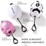 Slingshot-action egg will put your message in flight! Squeezable stress ball material with sturdy, elastic, easy-launch band. Flies up to 20 feet! 3″ W x 2″ H