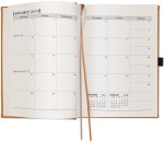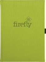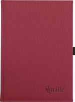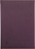 Vibrant, textured, padded covers in Pink, Orange, Lime, or Purple. Includes a 12-month, digitally-printed calendar at front (13 sheets) and 125 sheets of lined filler. Includes a blind deboss imprint up to 16 square inches. Features quality, thread-sewn book binding, black elastic pen loop, and blue & silver satin ribbon bookmarks. Not available for SureShip. 7″ W x 9.5″ H