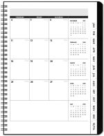 Flexible front cover (choose between GlossMetallic, Linen) and black paperboard back cover. Includes a 14-month planner in front (pages are tabbed for quick reference), and 50 sheets of lined filler. Black wire binding is standard (more colors available). Complies with FSC. 7″ W x 10″ H x 0.75″ D