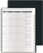 Vertical Monthly Planner…As our most popular planner, the Analyst boasts large date blocks for easy organization and die-cut tabs for quick reference to make this the ideal planning tool for fast, efficient date keeping. It features 32 pages (14 months), full year-in-view, 4-year planning spreads, area code map, contact page, and 15 blank memo sheets in back. Leather front cover, black paperboard back cover, one-color foil imprint or blind deboss and black wire binding. Optional PenPort & Pen. Complies with FSC. 8.5″ W x 11″ H