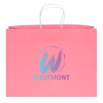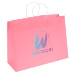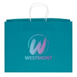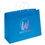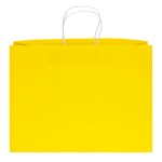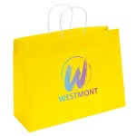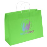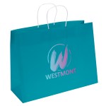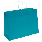 The Brite Vogue Shopper is a brightly colored 75# matte paper bag with a fold-over top and white twisted paper handles. Available in a variety of colors: Brite Blue, Teal, Yellow, Lime, and Pink. 16″ W x 6″ D x 12″ H