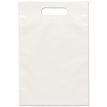 This eco-friendly 2.5 mil plastic bag contains up to 40% post-industrial recycled content and up to 20% nonpetroleum-based calcium filler. The bag features fold-over, reinforced die cut handles. One sided imprint only. 9 1/2″ W x 14″ H
