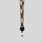 Our Brown 1″ lanyard is a top selling promotional product. It comes standard with a Black Badge Reel. The attachment makes it easy to affix products onto the lanyard itself. This product features a 36″ standard length and 1″ width. Unlike other vendors, our lanyards come printed on both sides and we can PMS color match if needed. We also offer full color printing. Lanyards are great for trade shows, giveaways, employees, company picnics, business seminars or any type of business. 1″ L x 36″ W x 36″ H