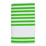 Our classic cabana with a twist. Striped beach towels are a timeless summer staple at the beach and the pool. With our new Sandbar Stripe design, you can make a big impression with more space for your brand. This 100% cotton terry towel is soft, absorbent, and ready to take on the sand, the sun, and the fun! GSM 391. 35″ L x 60″ W