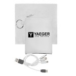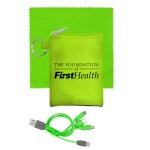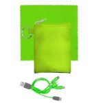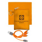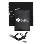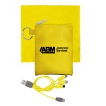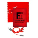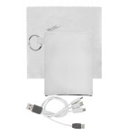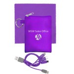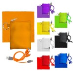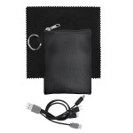 Elevate your tech accessories with our sleek and stylish tall stretchy pouch crafted from high-quality black lycra. This pouch is not only functional but also aesthetically pleasing. Included in this set is a vibrant 5×5 recycled PET cleaning cloth, perfect for keeping your devices looking brand new. Also, a colorful 4-in-1 charging cable with multiple USB adapters is included, making it compatible with IOS devices, Micro USB, and Type C USB. This innovative charging cable is patented and features both USB and Type C USB inputs, ensuring that you can easily charge all your devices with ease and convenience. Stay connected and charged up with this versatile and practical tech accessory set. Complies with CE, Prop 65. 2.75″ L x 2.75″ H
