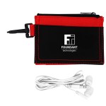 Introducing our sleek and versatile Compact Travel Wallet, complete with a pair of stylish white travel earbuds. This innovative wallet features a convenient pocket with a clear window for your ID holder, as well as a keyring to ensure you have all your essentials in one place while on the go. Stay organized and stylish with our Compact Travel Wallet – the perfect accessory for any traveler. Complies with Prop 65. 4.5″ L x 3.25″ H