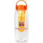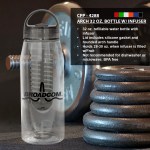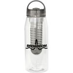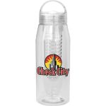 Introducing the 32 oz. water bottle with a convenient infuser for adding fresh fruit to your hydration routine. The lid features a silicone gasket and a rounded arch handle for easy carrying. This bottle is designed to hold 28-30 oz. of liquid when filled with fruit, ensuring you stay hydrated throughout the day. Plus, it is BPA-free for your peace of mind. Please note that this bottle is not recommended for use in the dishwasher or microwave, ensuring its longevity and durability. Elevate your water-drinking experience with this stylish and functional water bottle. Complies with Prop 65. 3.25″ D x 10.25″ H