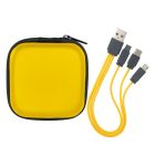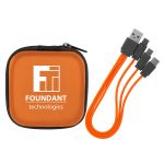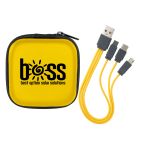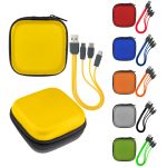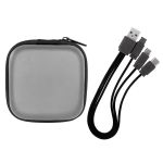 Enhance your tech gear with our stylish zippered two-tone square molded case, complete with a handy mesh pocket. Unzip to reveal a colorful 3-in-1 charging cable and a variety of USB adapters, ideal for all your charging requirements. This cutting-edge design is suitable for use with IOS devices, Micro USB, and Type C USB, making it an essential accessory for tech lovers. Additionally, our patented technology guarantees exceptional quality and performance, ensuring you get the best experience possible. Elevate your tech game with this versatile and innovative accessory today. Complies with CE, Prop 65. 3″ L x 3″ W x 1.4″ H