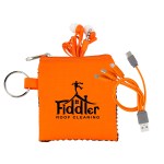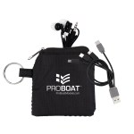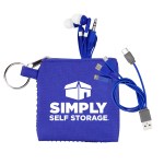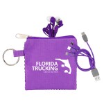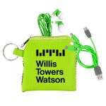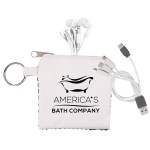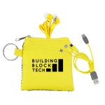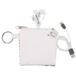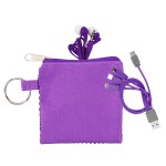 Experience the ultimate in convenience with our sleek and stylish sporty pouch, featuring a combination of smooth fabric and black mesh. Enhance your music listening experience with our vibrant travel ear buds, perfect for on-the-go use. Stay connected and charged up with our colorful 4-in-1 charging cable, complete with multiple USB adapters. This versatile cable is compatible with IOS devices, Micro USB, and Type C USB, making it perfect for all of your devices. Plus, rest assured knowing that our patented design ensures top-notch quality and performance. With both USB and Type C USB inputs, you’ll never have to worry about running out of power again. Complies with CE, Prop 65. 2.75″ L x 2.75″ H