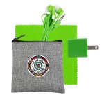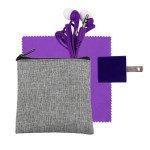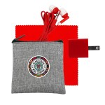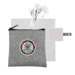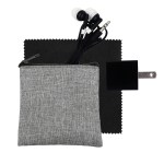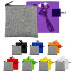 Introducing our eco-friendly collection: a sleek zippered pouch made from recycled PET, perfect for keeping your essentials organized on the go. Vibrant travel ear buds add a pop of color to your music experience. The 5 x 5 recycled PET cleaning cloth is both stylish and sustainable, making it easy to keep your devices spotless. And don’t forget the UL Square USB Wall Charger—UL Listed and Patented for your peace of mind. Upgrade your accessories with our environmentally conscious and innovative products. Complies with CE, cUL, FCC, Prop 65, UL. 3.5″ L x 4″ H