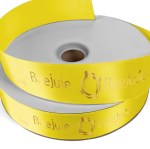 Thick Badge Satin Ribbon holds its shape beautifully and makes any occasional special. Personalize ribbon with your text or logo. Or, ask for your custom-printed ribbon to be assembled into bows with an adhesive peel-and-stick back. 100 yard of satin roll. 100 yd L x 1 1/2″ W