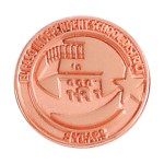 Sandblasting adds a great contrast between the raised and recessed areas of the pin. The raised areas have a brilliant high polished finish, while the recessed areas are matte textured. Includes 24kt gold, silver or copper plate. Custom shape and butterfly clutch backing. 1 7/8″ size. 1 7/8″ W