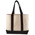 This 10 oz. cotton canvas tote bag is the perfect accessory for any outing. With a large main compartment, it provides ample space for all your essentials. The matching color accents on the outside of the handles, side of the tote, and bottom of the tote add a stylish touch to the bag. Whether you’re heading to the beach, running errands, or going to the farmer’s market, this tote is both fashionable and functional. The sturdy canvas material ensures durability, making it a reliable choice for everyday use. Carry your belongings in style with this versatile and chic tote bag. 13″ H x 17 3/4″ W