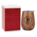 Enjoy your drink at any moment with this wine tumbler! Constructed of stainless steel, this tumbler holds up to 10 ounces and can keep drinks hot or cold for hours thanks to the double wall, vacuum insulated design. It also features a lid with rubber gasket for a snug fit. Meets FDA requirements and is BPA free. Hand wash is recommended. Optional Holiday Packaging available in red, blue, or green: Add $1.50 (g) ea Optional Gift Box Available – Add $1.25 (g) per piece. Complies with FDA. 5″ H x 3.25″ D