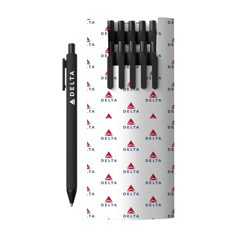 A collection of ten Alix Ballpoint Pens, presented in a one-of-a kind custom decorated sleeve. The custom decorated sleeve is a versatile and effective promotional tool that can help businesses elevate their branding and marketing efforts, increase customer engagement, and leave a lasting impression on their audience. 7.5000″ L x 3.2500″ W x 1.2500″ H