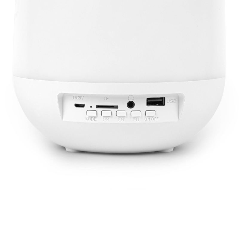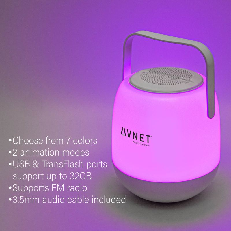 Make this the centerpiece of your audio enjoyment. Features: 10 watts, 1200mAh, Cycle between 7 colors; Flash mode, slow fade included, Multi-function interface, including play, pause, phone functions, volume & shuffle, 3.5mm auxiliary jack for wired connectivity if desired, Type-C connector (DC5V-1A) for charging (cord included), 32GB TransFlash card slot for playing of music files (card not included), Constructed of ABS plastic. Individually boxed (box size: 6 1/2″ L x 6 1/2″ W x 7 1/4″ H). 6 1/2″ W x 9 1/2″ H