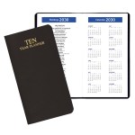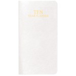 Introducing our stunning 10-Year Reference Planner for the years 2025-2034, featuring a luxurious leatherette cover and a convenient 3-1/2″x6-1/2″ saddle stitched design. Each open spread includes one year and holidays, with a vertical format for easy viewing. The planner also includes a time zone map, important contact pages, a phone/address section, and a special dates section. Stay organized and stylish with this essential planner. 3 1/2″ W x 6 1/2″ H