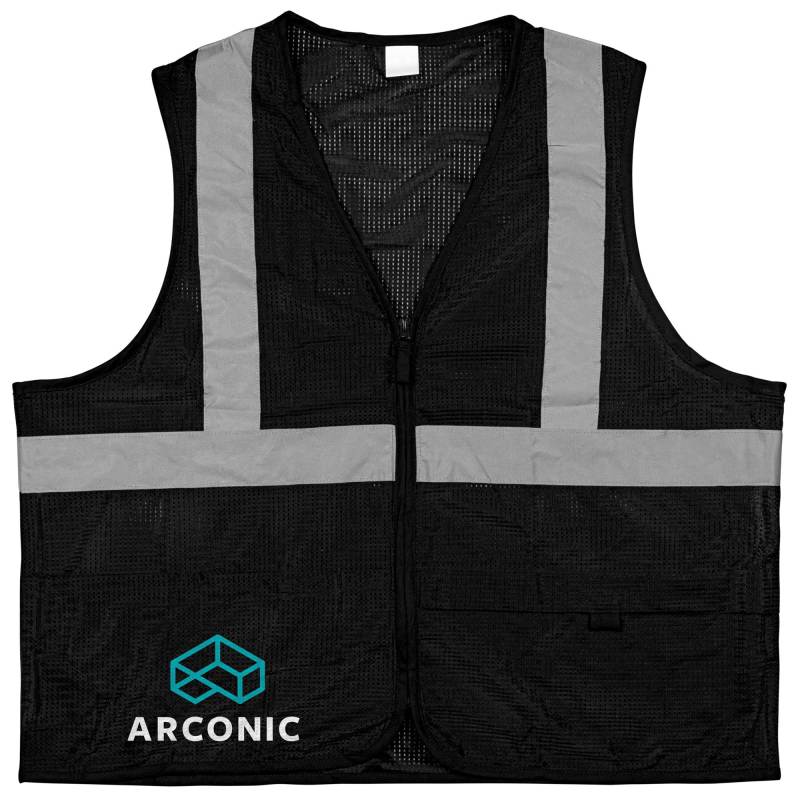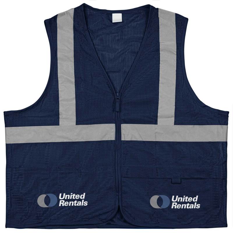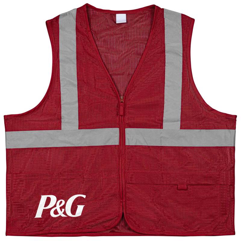 Meets or exceeds ANSI/ ISEA Class 2 safety standards. Includes zippered front closure and three front pockets. Made of 100% ANSI rated polyester material. Features 2-inch reflective tape. See our website for more imprinting options!