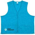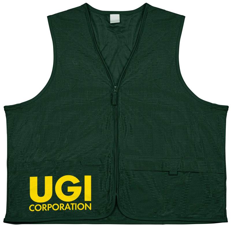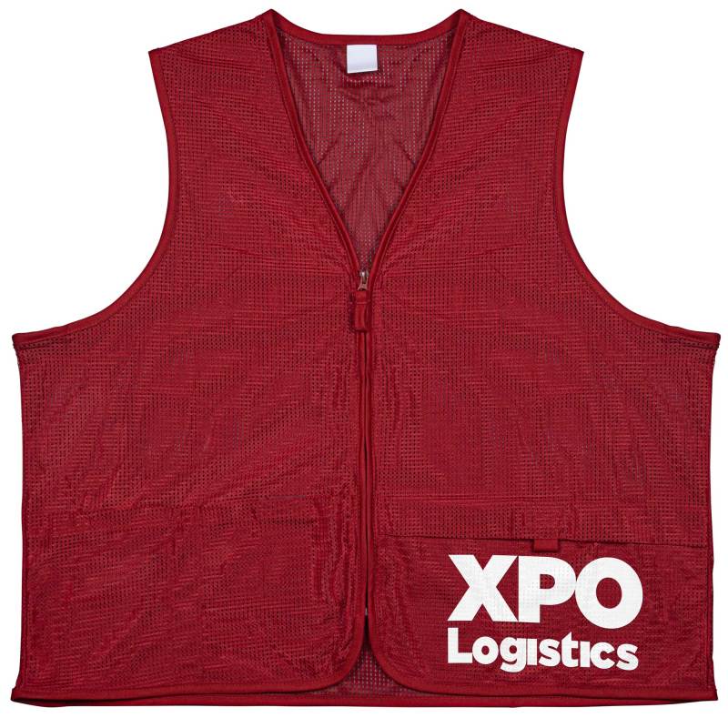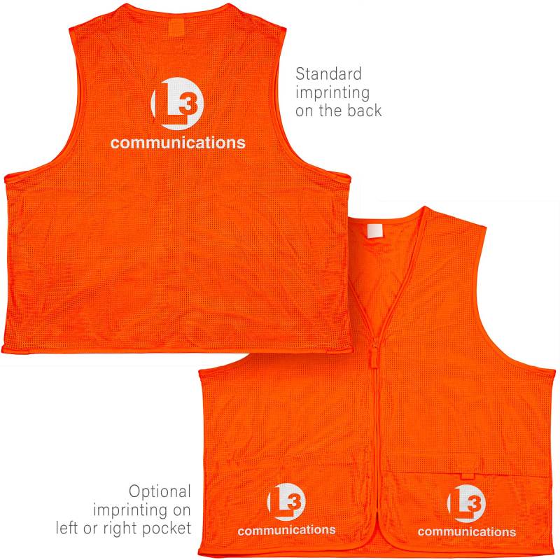 Includes zippered front closure and three front pockets. Made of 100% polyester mesh. Sizes include M, L, XL, XXL, XXXL. Complies with ANSI.