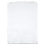 Unlined 30# white paper Merchandise Bag features a serrated top, pinch bottom, and no gusset. 10″ W x 13″ H