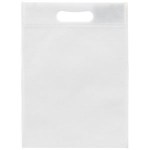 This 10W x 14H reusable bag is made with premium non-woven material and die cut handles. 10″ W x 14″ H