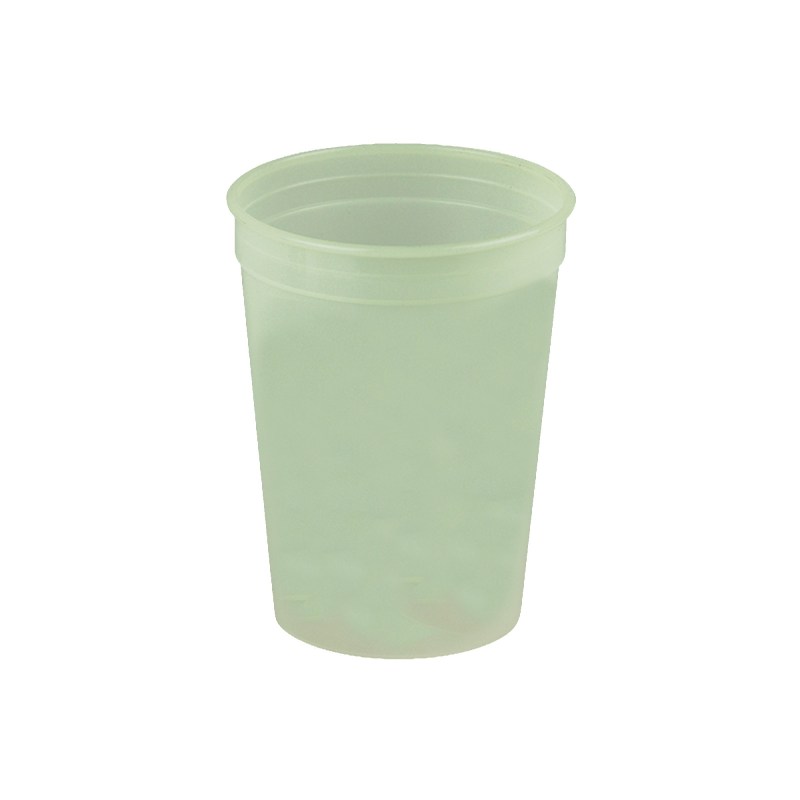 12 oz? Glow In The Dark smooth sided stadium cups When you have an evening event coming up. these cups can help “highlight” your message! Molded from BPA free polypropylene (recycle code 5)Ideal for student union centers. concert venues. sporting arenas and much more They are conveniently dishwasher safe top rack only and union made in the USA Glow in the dark products must be exposed to light prior to use. Complies with ANSI, CPSIA, FDA, Prop 65. 4.125″ H x 3.125″ Diameter