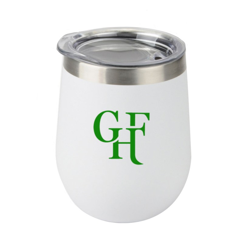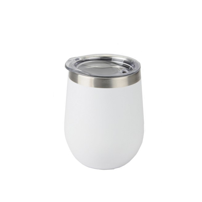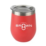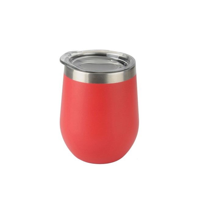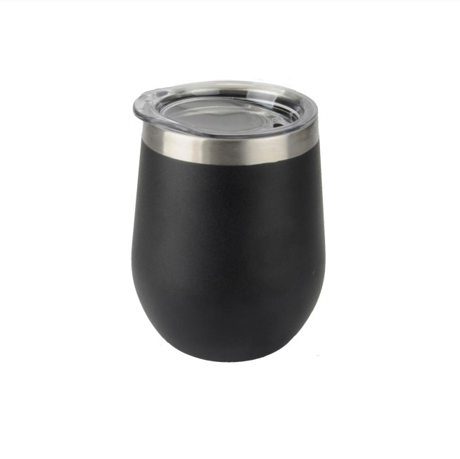 This stainless steel wine tumbler is designed with a stainless steel band and double wall vacuum insulation to keep your beverages at the perfect temperature. It features a powder-matte finish and clear sip through lid. Hand wash only.
