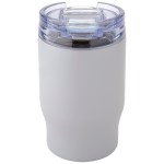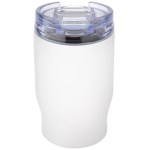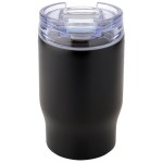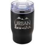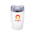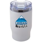 Transitions between poured drink insulated tumbler, 12 Oz. can cooler, and 12 Oz. beer bottle cooler. Fits in most corporate and personal coffee machines. Lead-free vacuum seal. Stainless Steel dual-walled construction. Copper lined, vacuum-insulated deep draw liner maintains optimal drinking temperatures and provides 8X heat retention. Durable powder coated finish. Twist top rubberized ring to hold a standard 12 Oz. can or bottle. Sweat-free design. 3.25″ H x 3.25″ W x 5.25″ D