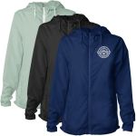 Lightweight & Packable — perfect for travel or on-the-go use. Adjustable Hood with drawstrings for customizable coverage. Full-zip front for easy layering and quick ventilation. Elastic cuffs and side slash pockets. Add your custom screen printed message or logo . Complies with Prop 65.