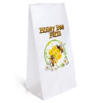 Durable white paper S.O.S. Bag features a side gusset and a serrated cut top. 7 1/8″ W x 4 3/8″ D x 13 7/8″ H